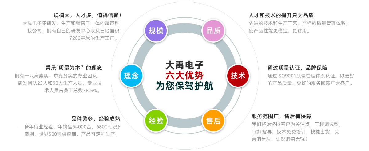 福州大禹電子科技有限公司成立于2008年自創(chuàng)辦以來,專注超聲產(chǎn)品的研發(fā)和產(chǎn)業(yè)化,始終堅持技術(shù)創(chuàng)新是企業(yè)發(fā)展動力的理念,運用最基礎(chǔ)的物理聲學(xué)原理,攻克了一系列卡脖子難題,成功打破了國外壟斷,把超聲技術(shù)運用到了工控、水利、市政、環(huán)保、醫(yī)療,海洋等各個領(lǐng)域。積累了多項發(fā)明專利和幾十項實用新型專利、軟件著作權(quán)、外觀專利;獲得了“科技創(chuàng)新小巨人”、“專精特新”、 “國家級高新技術(shù)企業(yè)”等榮譽,掌握了產(chǎn)品硬件、軟件、材料和工藝的核心技術(shù),通過ISO9001體系認證和環(huán)境管理體系認證。主要產(chǎn)品有物位計、明渠/多普勒流量計、空氣/...